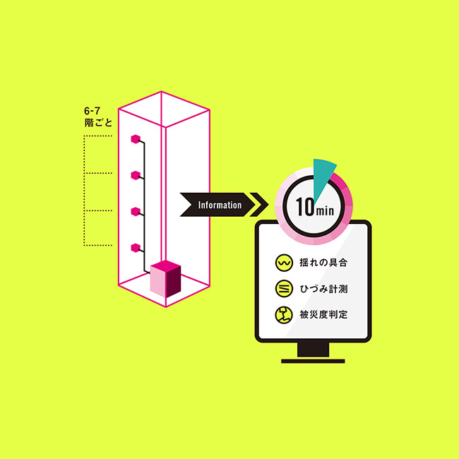 また、管理スタッフが常駐しない中小規模のビルには、メーカーと共同開発した通信機能付きの地震計を設置。危機管理センターで震度を確認できるほか、建物に設けた情報表示板に必要なメッセージを表示させることが可能です。