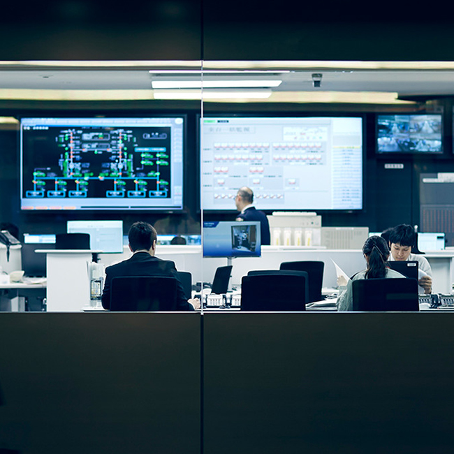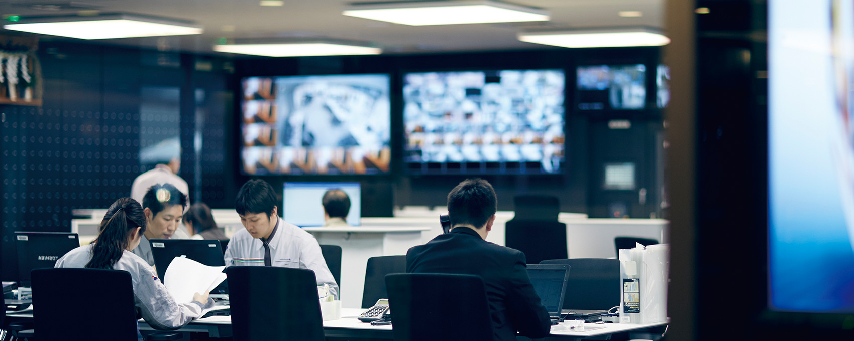 各ビルに設置されている防災センターは、日々の安全を見守るため、常に万全の体制で臨んでいます。そして、防災・防犯・防火などのあらゆる場面に備え、ビルに対するお客様の安心感と信頼感を高めるように努めています。