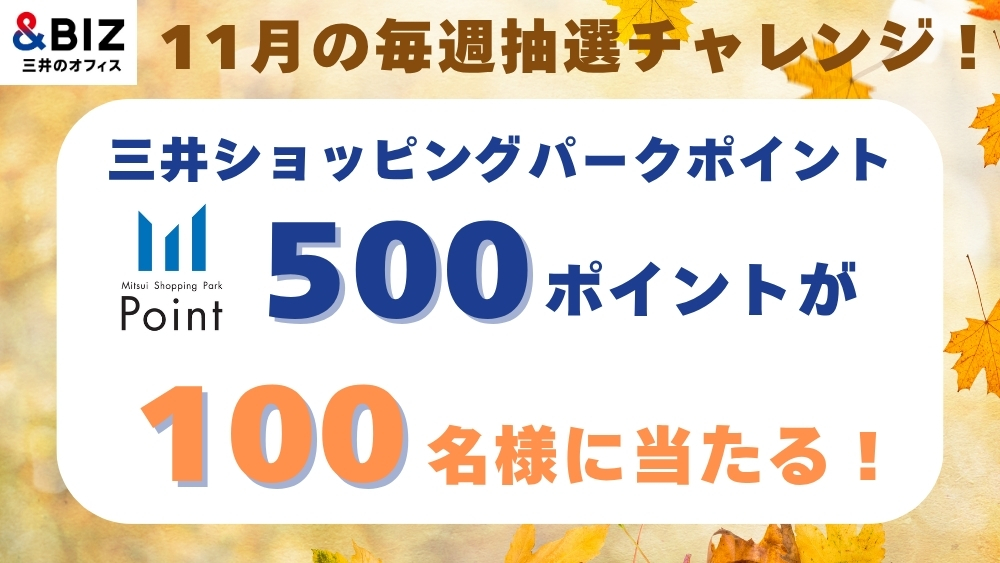 ◆さらに!&BIZ会員様はマイページから三井ショッピングパークポイントナンバーを連携すると、オフィス周辺の対象物件でのお支払いでいつでも1%ポイント増量となりますので、ぜひ連携までしてご参加ください!