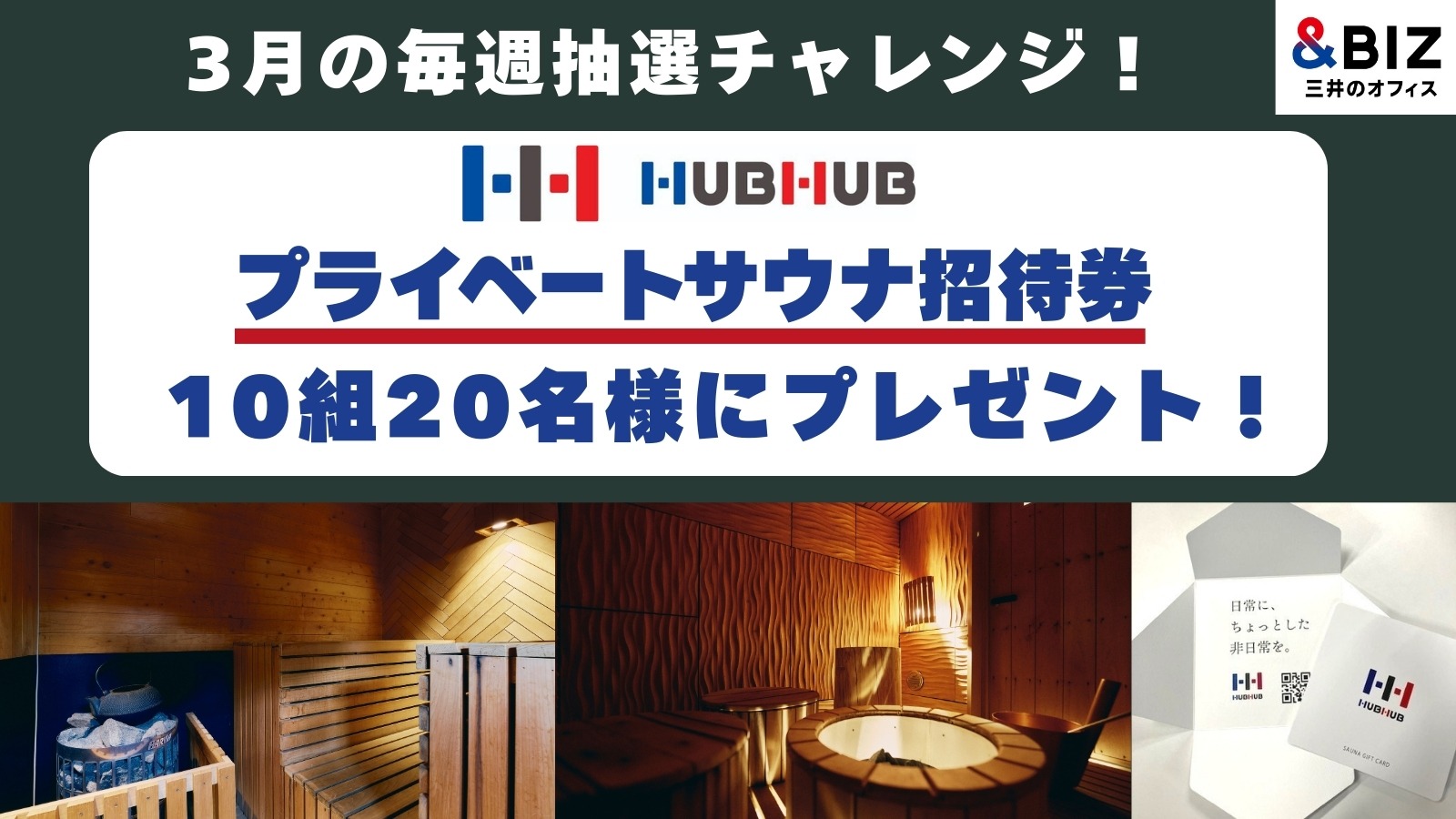 HUBHUBプライベートサウナ無料招待券(10組20名様)