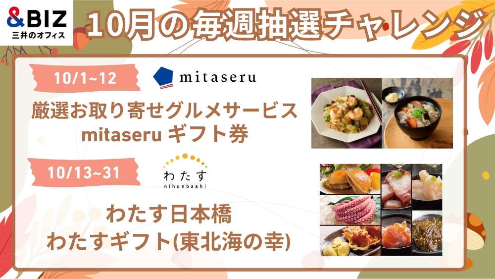 今月は食欲の秋にぴったりな賞品を月の前後半に分けてプレゼント!毎週忘れず挑戦してください!
