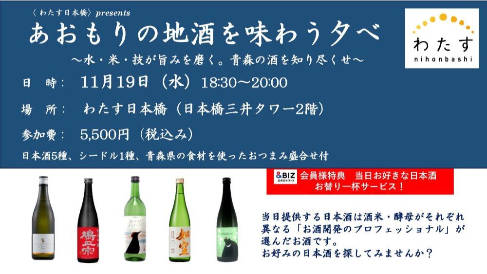 【わたす日本橋】あおもりの地酒を味わう夕べ