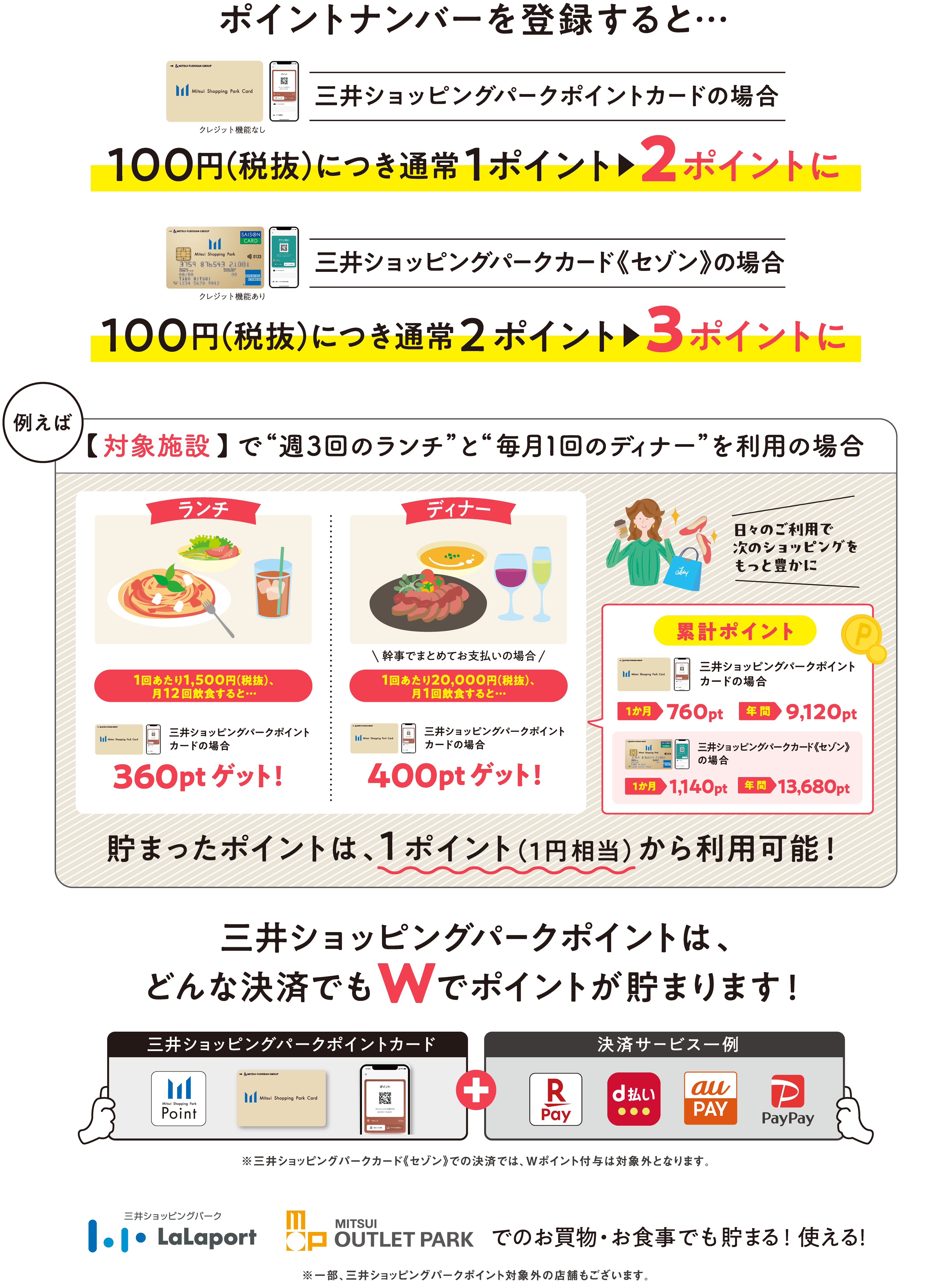 三井ショッピングパークポイントカード カード提示で通常1ポイントから2ポイント
